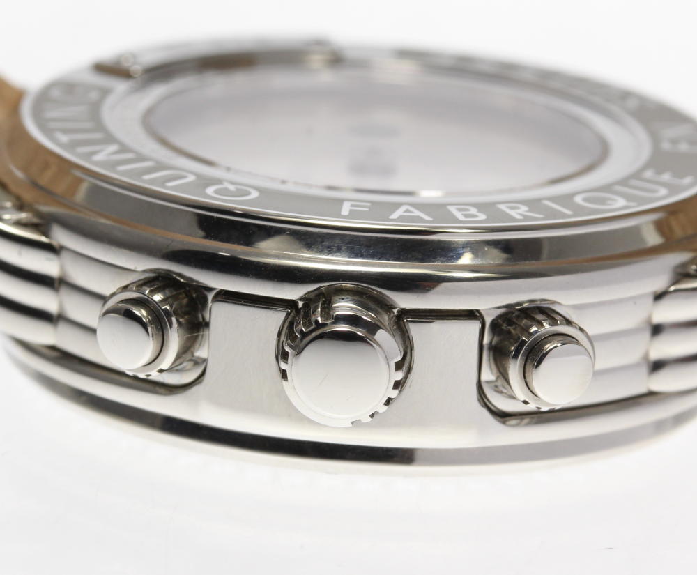 商品管理No. 428944 P1 NA181001 IT 素 材 SS/革 文字盤色 ホワイト×スケルトン 機械タイプ クォーツ Ref.No - シリアルNo 9** 参考定価 - 機能・特徴 デイト表示 クロノグラフ 【付属品】 外内箱 保証書 ケースサイズ(W) 約43mm(竜頭含めず) ベルトサイズ(※1) 現状最大ベルトサイズ(腕総まわり) 約20.5cm ラグ幅 20mm 総重量(本体) 約107.3g OH歴 - 振動数 - 日差 クォーツの為日差は省略します 保証書の購入店 海外時計店 保証書の購入日 2008年12月2日 本体ランク A+ ブレスランク A+*純正 ※1:ベルトサイズとは、ケース部分も含めた 総腕回りのサイズになります。